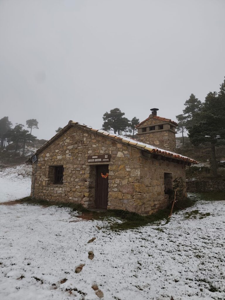 El interior cuenta con dos estancias, divididas en dos pisos. La chimenea parece en buen estado y hay una mesa y bancos, así como armario con algo de material. Las puertas y ventanas están en buen estado y había escoba y recogedor. En el piso de arriba se puede dormir ya que el suelo del piso de abajo es de piedra desigual.