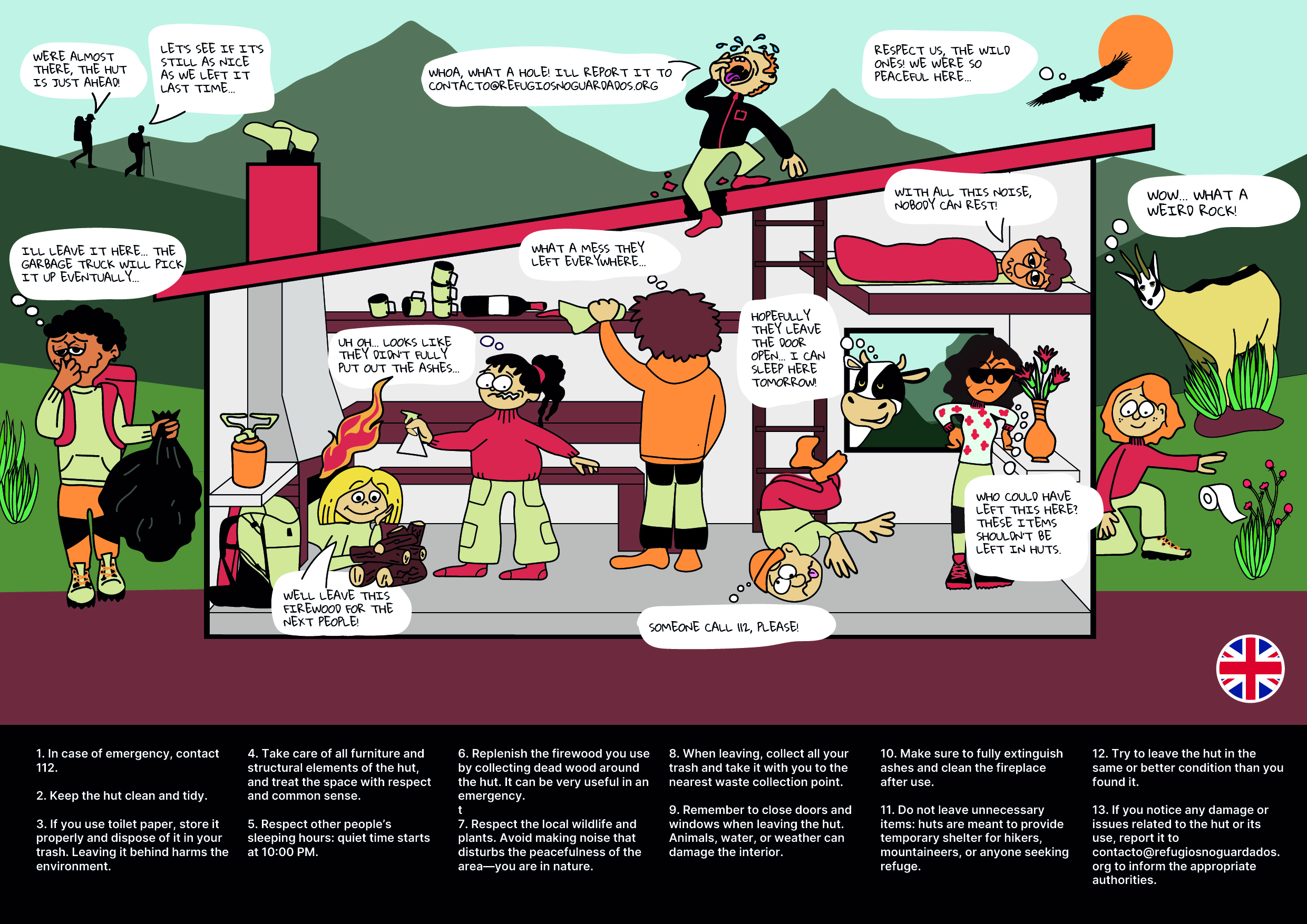 Visita nuestro video para conocer los pasos necesarios y colocar correctamente la cartelería de buen uso de los refugios no guardados. Además, antes de colocar la cartelería, recuerda contactar con los dueños de los refugios no guardados donde vayas a colocarla para obtener su permiso. Y si después de ver el video tienes alguna duda, contacta con nosotros.