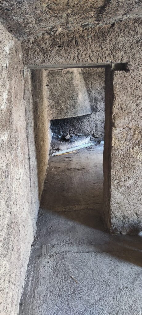 El refugio cuenta con dos habitáculos diáfanos, con sus correspondientes puertas al exterior. Dispone de chimenea y una pequeña ventana.